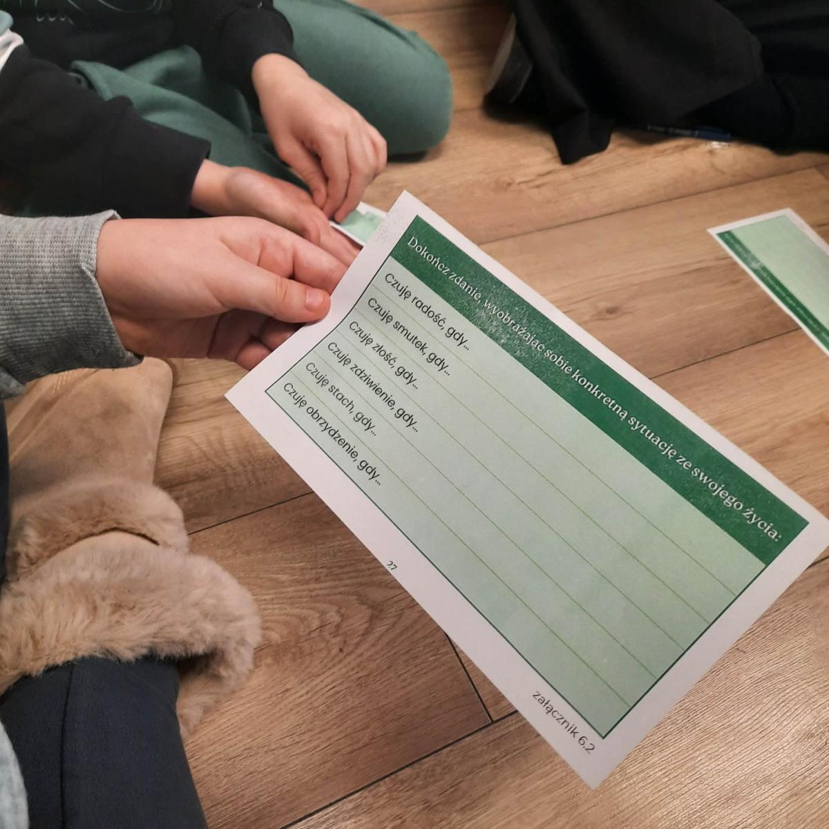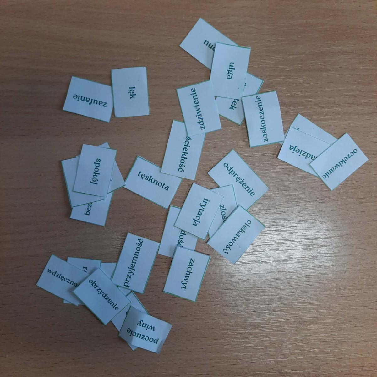 • elementy treningu emocji (karty emocji, historyjki społeczne),